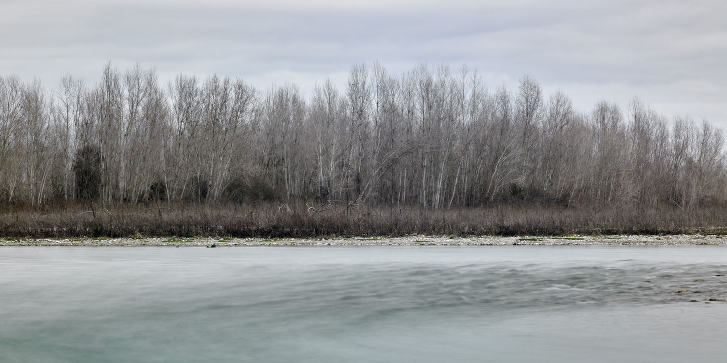 Le fotografie di questo progetto sono state realizzate lungo i greti ghiaiosi che circondano l’isola di Papadopoli, la più grande isola fluviale d’Italia, formatasi dopo una piena del Piave alla fine dell’Ottocento. È un paesaggio modellato dall’acqua, dal tempo e dall’assenza. Conosciute come ‘le grave’, queste distese di ghiaia portano con sé una risonanza che richiama sia la realtà materiale del terreno sia il suo peso storico, segnato dalla violenza e dalla morte nelle fasi finali della Prima Guerra Mondiale.